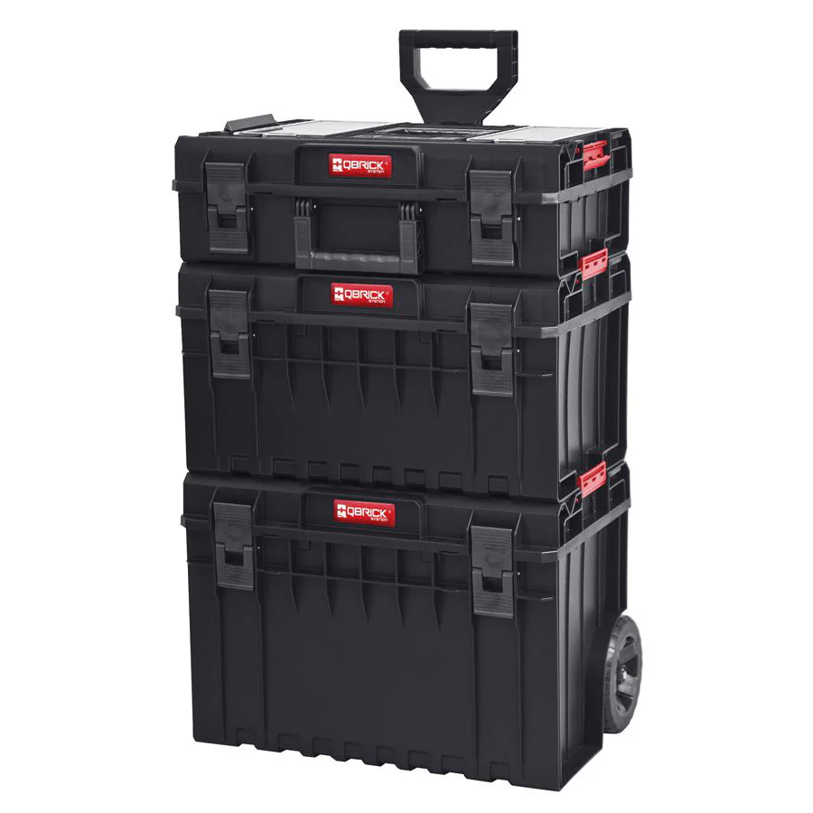 Cutie pentru scule de dimensiuni mari, echipata cu roti pentru a oferi o mobilitate excelenta a sistemelor modulare Qbrick. Cele doua roti interioare sunt acoperite cu cauciuc, montate pe o axa metalica, care permit transportul in siguranta chiar si a seturilor complexe. Cutia este echipata cu un maner telescopic, din aluminiu, care se inclina atunci cand capacul este deschis pentru a oferi un acces confortabil.