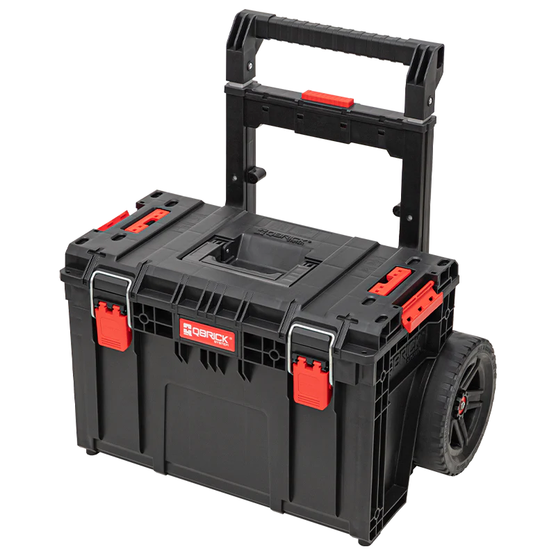 Echipata cu roti mari montate pe o axa metalica si un maner dublu telescopic din aluminiu, aceasta ofera o mobilitate excelenta, chiar si atunci cand transporti seturi extinse de scule.