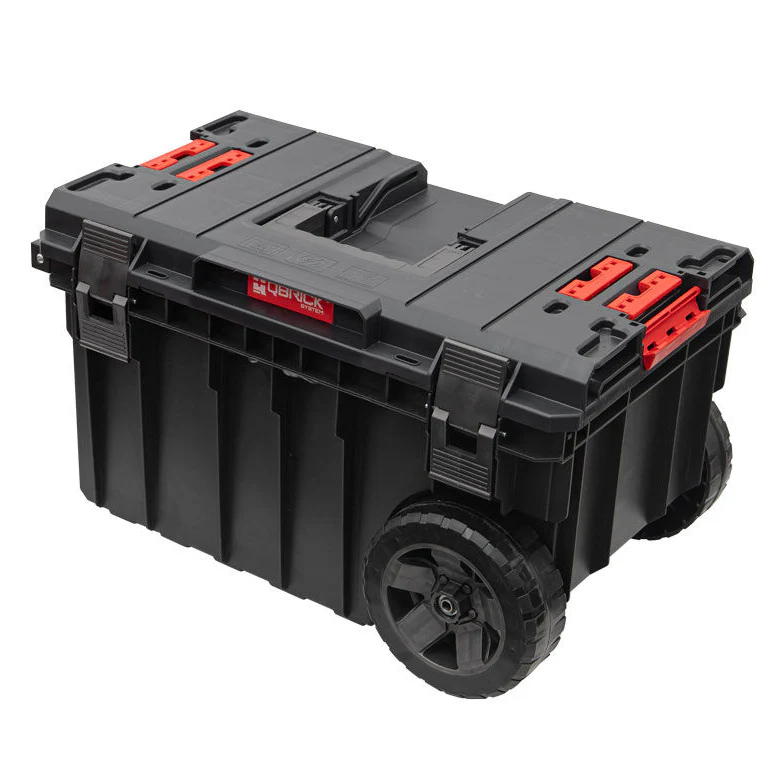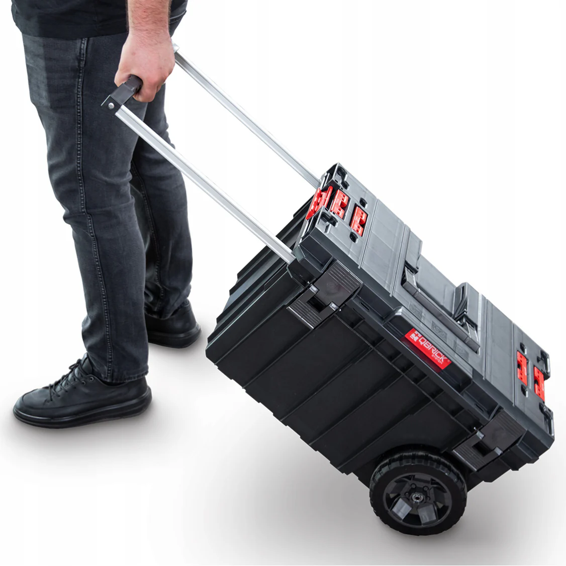Cutie pentru scule de dimensiuni mari, echipata cu o tava practica si cu roti pentru a oferi o mobilitate excelenta a sistemelor modulare Qbrick. Cele doua roti interioare sunt acoperite cu cauciuc, montate pe o axa metalica, care permit transportul in siguranta chiar si a seturilor complexe. Cutia este echipata cu un maner telescopic, din aluminiu, care se inclina atunci cand capacul este deschis pentru a oferi un acces confortabil.